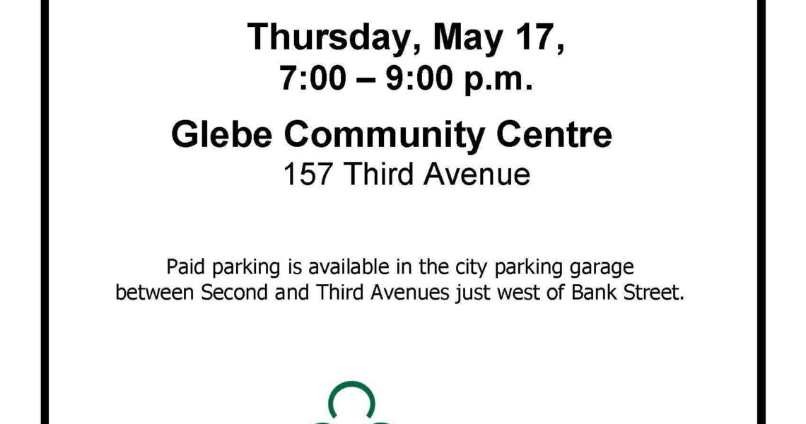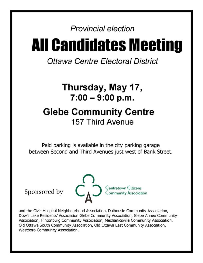 The CCCA is sponsoring an all candidates meeting with many of the community associations in Ottawa Centre. Thursday, May 17, 7:00 – 9:00 p.m. Glebe Community Centre 157 Third Avenue ...