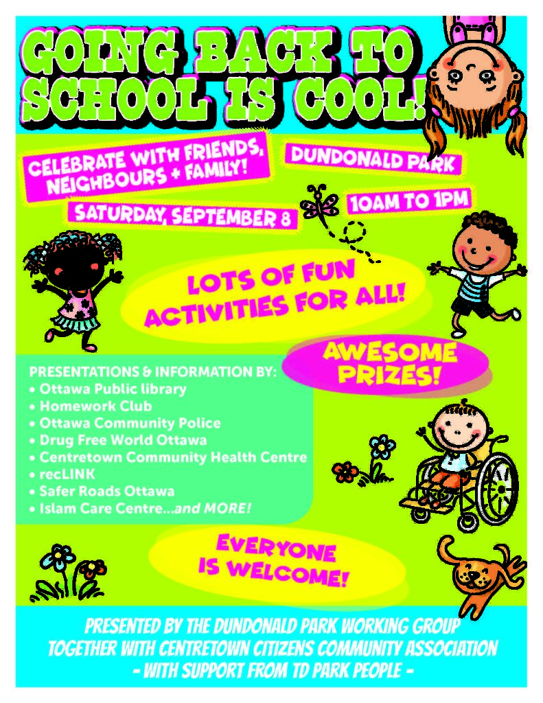 Come join the CCCA at our Free Back to School event. We are working with some of our Friends with the Dundonald Park Working Group, Centretown Community Health Centre, TD ...